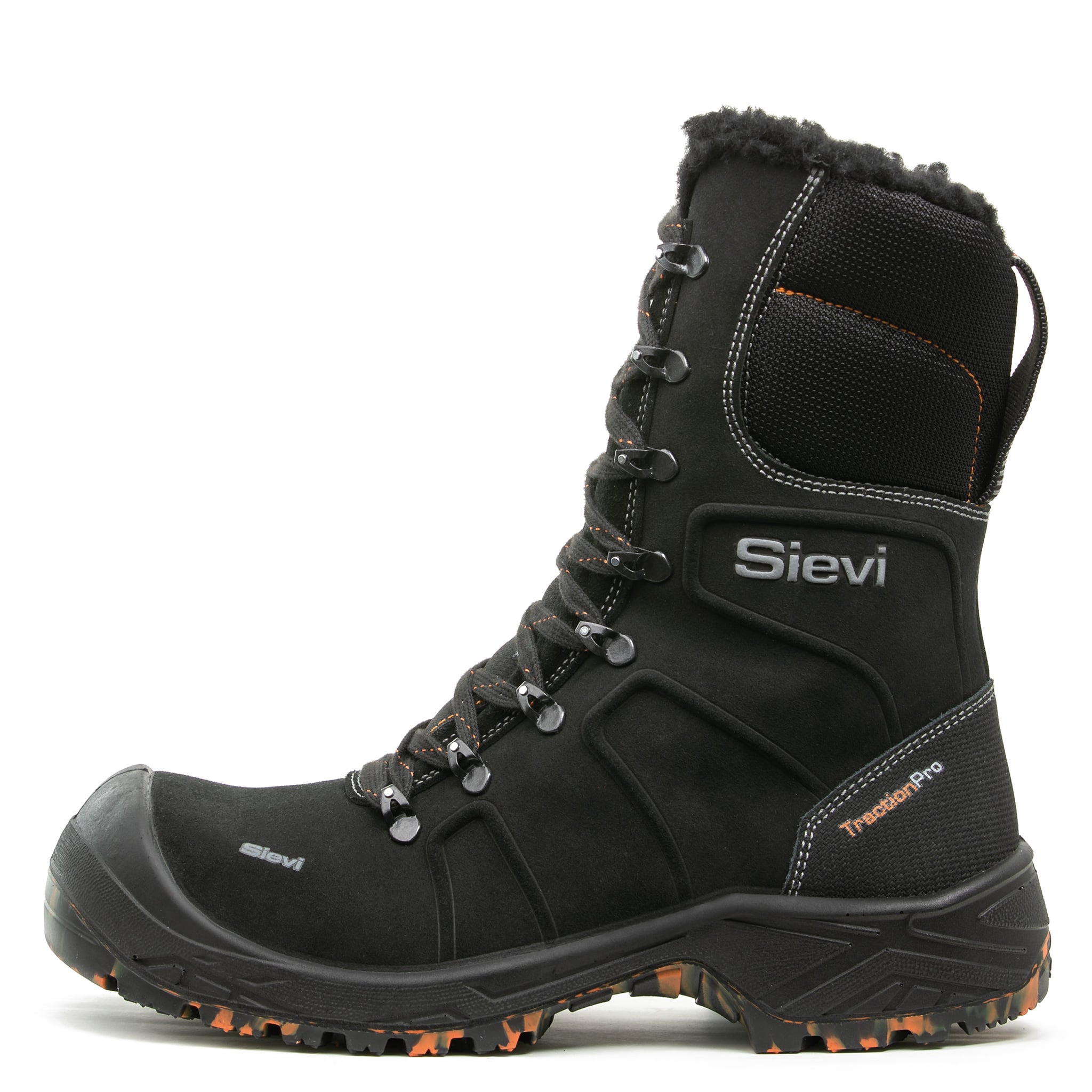 Pintamateriaalina on käytetty kestävää ja vettähylkiväksi käsiteltyä pintanahkaa yhdistettynä haljasnahkaan. Sievin TractionPro kumikitkapohja tarjoaa tarvittavaa pitoa ja joustoa rajummissakin talvipakkasissa. TractionPro on tukevarakenteinen kitkapohja, joka lisää pitoa liukkailla pinnoilla – ainutlaatuinen kitkakumiseos yhdessä Sievin kehittämän FlexStep®-välikerroksen kanssa mahdollistaa pohjan joustavuuden kaikissa olosuhteissa.