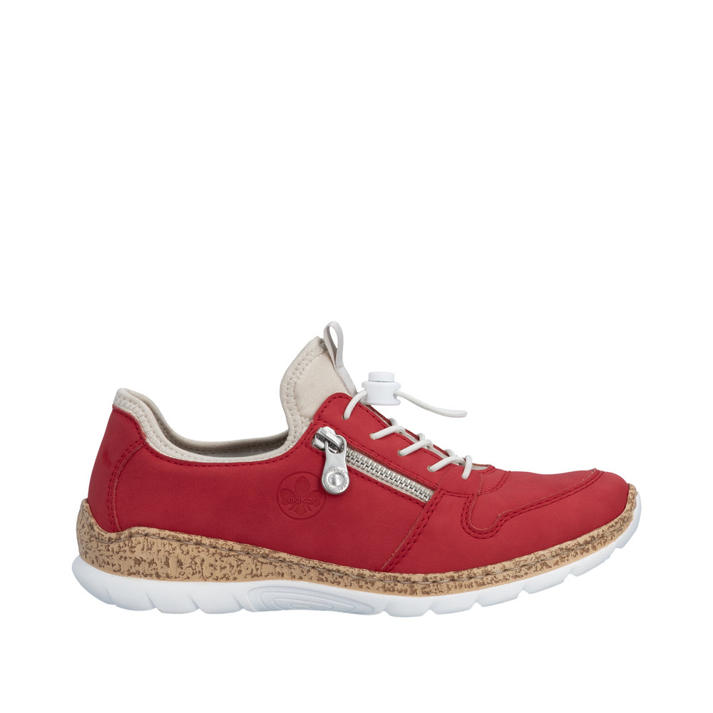 Rieker Morelia N42G0-33 yhdistää sporttisen ilmeen ja helpon käyttömukavuuden. Tämä punainen naisten kävelykenkä sopii käyttäjälle, joka arvostaa keveyttä, joustavuutta ja arjessa toimivaa istuvuutta. Nauhoilla saat säädettyä päällisen sopivaksi, ja slip-on-tyyppinen rakenne helpottaa pukemista.