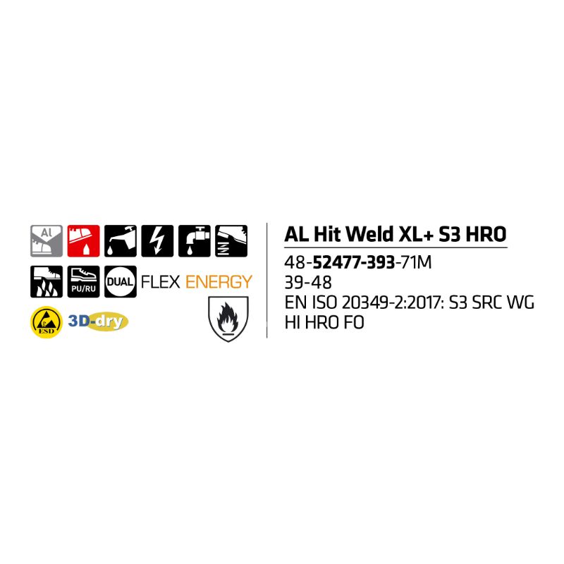 Sievi AL Hit Weld XL+ S3 HRO on hitsaajalle suunniteltu turvakenkä, kun työympäristössä on kuumuutta, kipinöitä ja kovaa kulutusta. S3-luokan suojaus tuo varmuutta vaativiin olosuhteisiin, ja HRO-lämmönkestävä ulkopohja kestää kuumia alustoja sekä rasitusta työpäivästä toiseen. Pitävä pohjarakenne auttaa hallitsemaan askelta teollisuus- ja metallityöympäristöissä, joissa alusta voi olla liukas tai epätasainen. XL+ -mitoitus lisää tilaa ja käyttömukavuutta – erityisen hyvä leveämmälle jalalle tai paksummille sukille. Erinomainen valinta hitsaukseen, metallialalle, konepajoille ja kunnossapitoon, kun haluat suojaa ja kestävyyttä ilman kompromisseja. Tuote täyttää hitsausstandardin EN ISO 20349-2:2017 vaatimukset ja suojaavat hitsaustyössä esiintyviltä lämpöriskeiltä ja sulametalliroiskeilta.