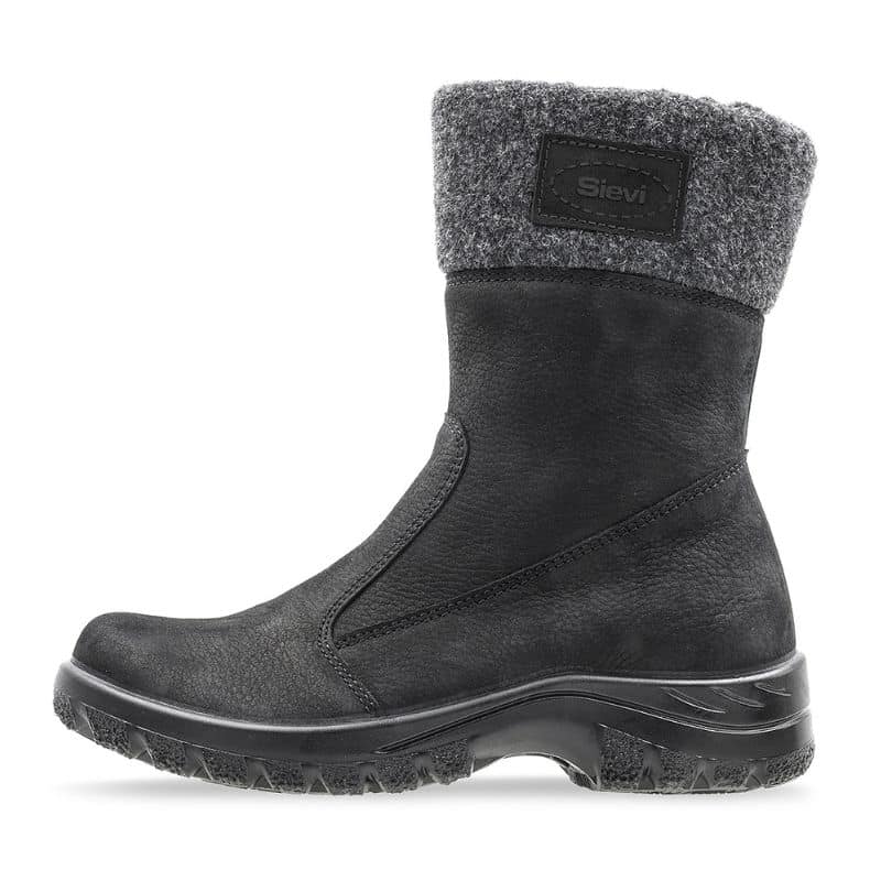 Naisten korkeavartiset nilkkurit, joissa on sisäsyrjällä vetoketju. Päällinen on vettä ja likaa hylkivää Sievi-nupukkinahkaa, joka on käsitelty HydroTec -ominaisuudella. Varren yläosa huopaa.