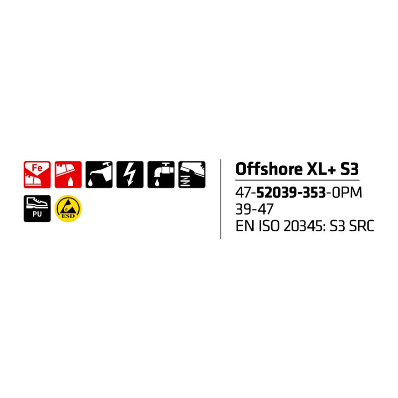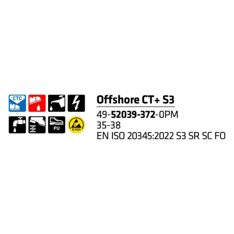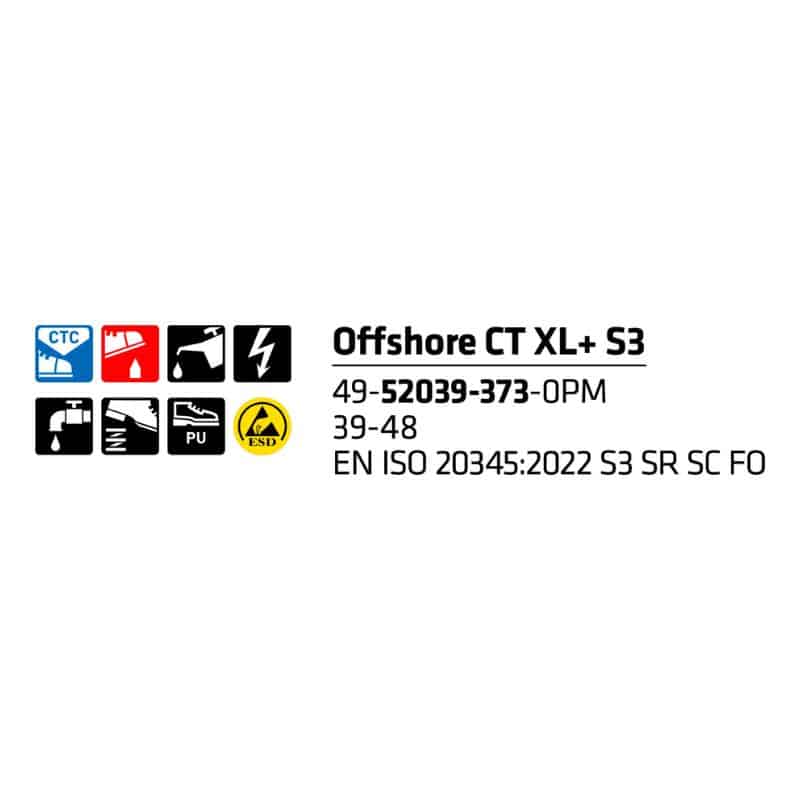 S3-luokan turvaominaisuudet tekevät kengästä luotettavan kumppanin esimerkiksi varastoihin, teollisuuteen, asennustöihin ja kunnossapitoon. Offshore CT XL+ yhdistää tukevuuden ja käytännöllisyyden, jotta voit keskittyä työhön – askel askeleelta.