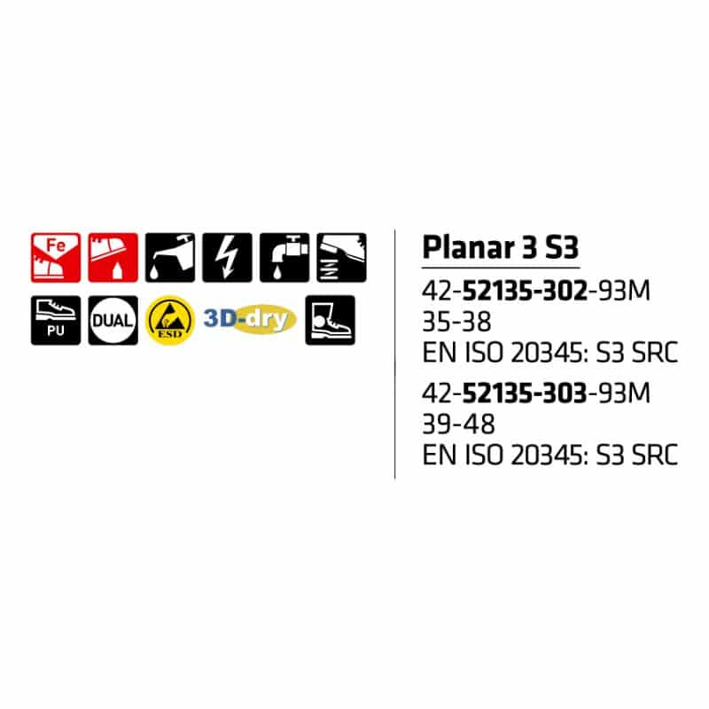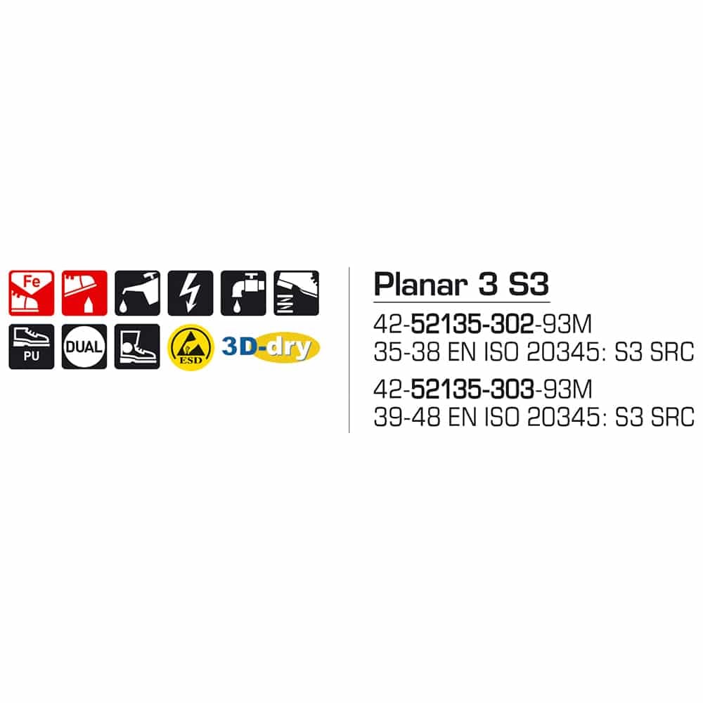 Planar 3:n erikoisuus on mukava memory foam -nilkkasuoja, joka muotoutuu jalan mukaan ja tukee nilkkaa miellyttävästi. Tuki auttaa vähentämään nilkan rasitusta ja lisää varmuutta liikkumiseen. Käyttömukavuutta nostavat 3D-dry-vuori ja kaksoisvaimennetut Dual-pohjalliset: vuori siirtää kosteutta tehokkaasti pois iholta, ja pohjalliset pehmentävät askellusta pitkissä vuoroissa.