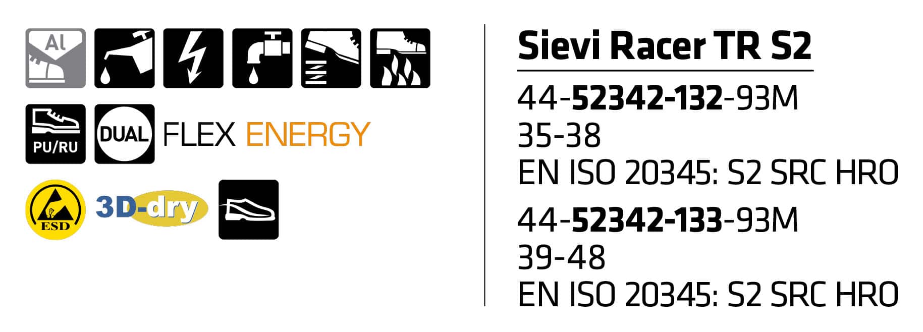 Sievi Racer TR S2 on kevyt ja sporttinen nauhakenkä, joka tuntuu mukavalta heti jalkaan laitettaessa ja tukee jalkaa anatomisesti koko työpäivän ajan. Hengittävä PU-pinnoitettu erikoisnahka tekee kengästä kestävän ja miellyttävän käyttää, ja samalla se auttaa pitämään jalat raikkaina myös vauhdikkaassa menossa.