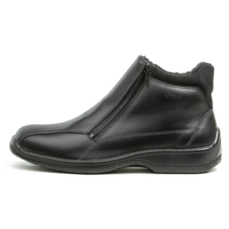 Miesten mustat talvinilkkurit tuplavetoketju kiinnityksellä. Päällinen on kestävää pintanahkaa. FlexStep®-kiilapohja on joustava, iskuja vaimentava, tukeva ja pitää hyvin pakkasessakin. Alumiinihuopapohja ja lämmin fleecevuori pitävät jalat lämpiminä.