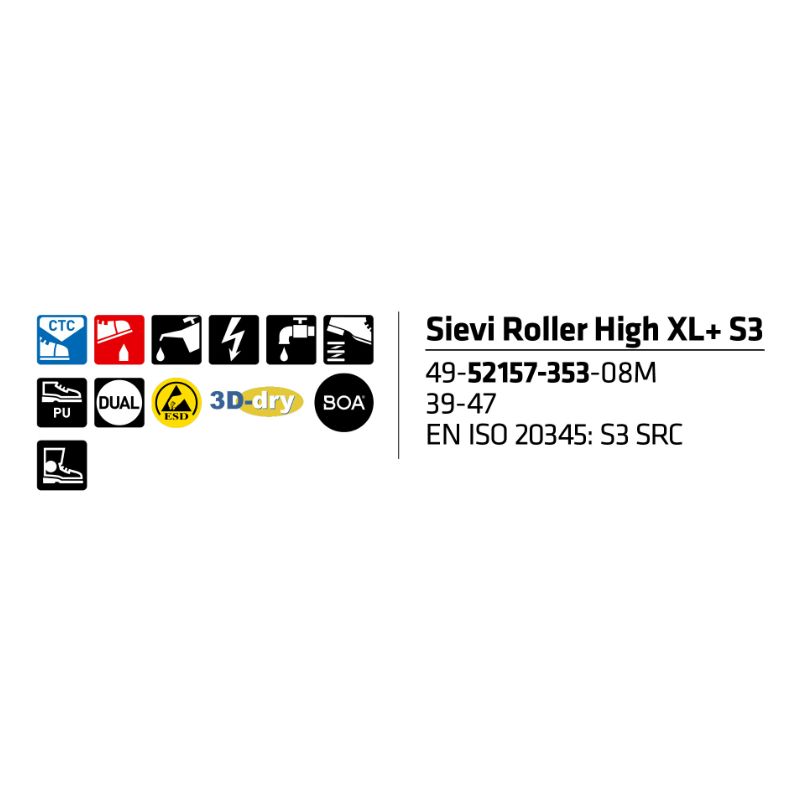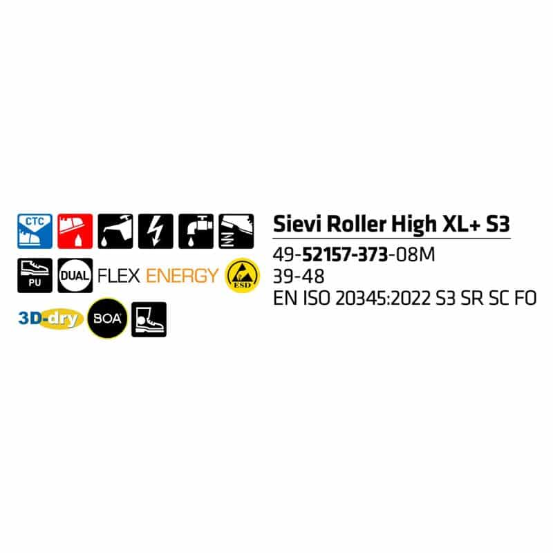 Sievi Roller High XL+ S3 on sporttinen, leveälestinen turvanilkkuri huippuominaisuuksilla ammattikäyttöön!
