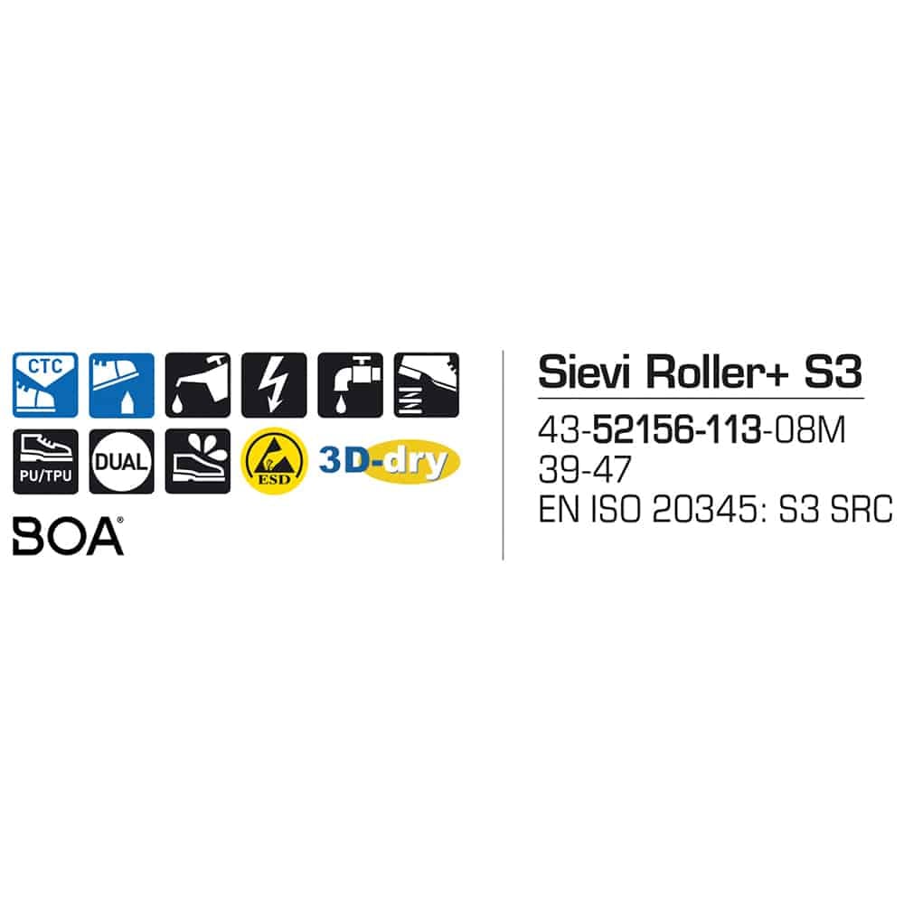 Sievi Roller+ S3 turvakengät BOA®-kiristysmekanismilla