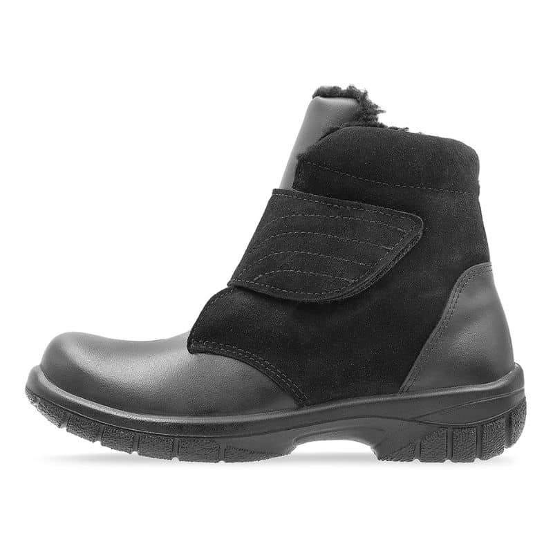 Lämpimät talvinilkkurit tilavalla XL-lestillä. Leveän tarrakiinnityksen ja venykkeen avulla nilkkurit ovat helppo pukea jalkaan. Päällinen kestävää pintanahkaa ja haljasnahkaa, jotka on käsitelty vettä ja likaa hylkiväksi. FlexStep®-joustopohja pysyy joustavana myös pakkasella. Paksu villateddyvuori yhdessä irrotettavien Thermo ALU -pohjallisten kanssa pitää jalat lämpiminä.