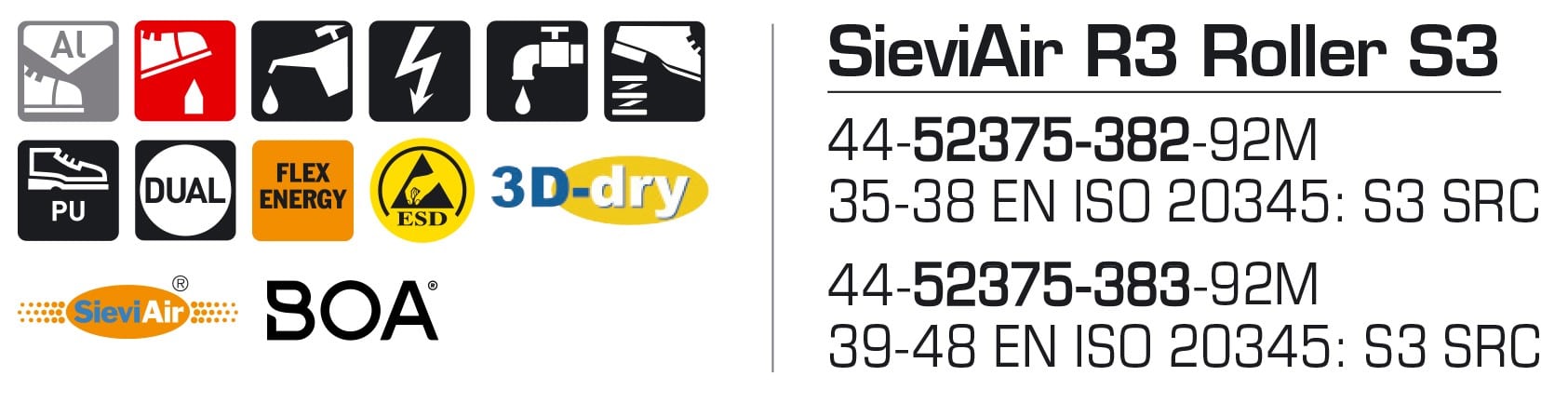 Sievi Sieviair R3 Roller S3 turvakengät BOA®-kiristysmekanismilla