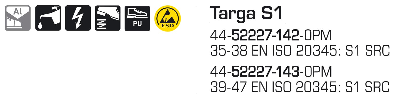 Sievi Targa S1 – turvasandaali alumiinisella varvassuojalla. Kevyt, mutta kestävä turvajalkine, joka on nopea pukea ja riisua tarrakiinnityksensä ansiosta. Edulliset luokan S1 SRC turvakengät, jotka ovat ESD hyväksytyt. Targa S1 on myös käytännöllinen ja mukava turva-kesäjalkine!