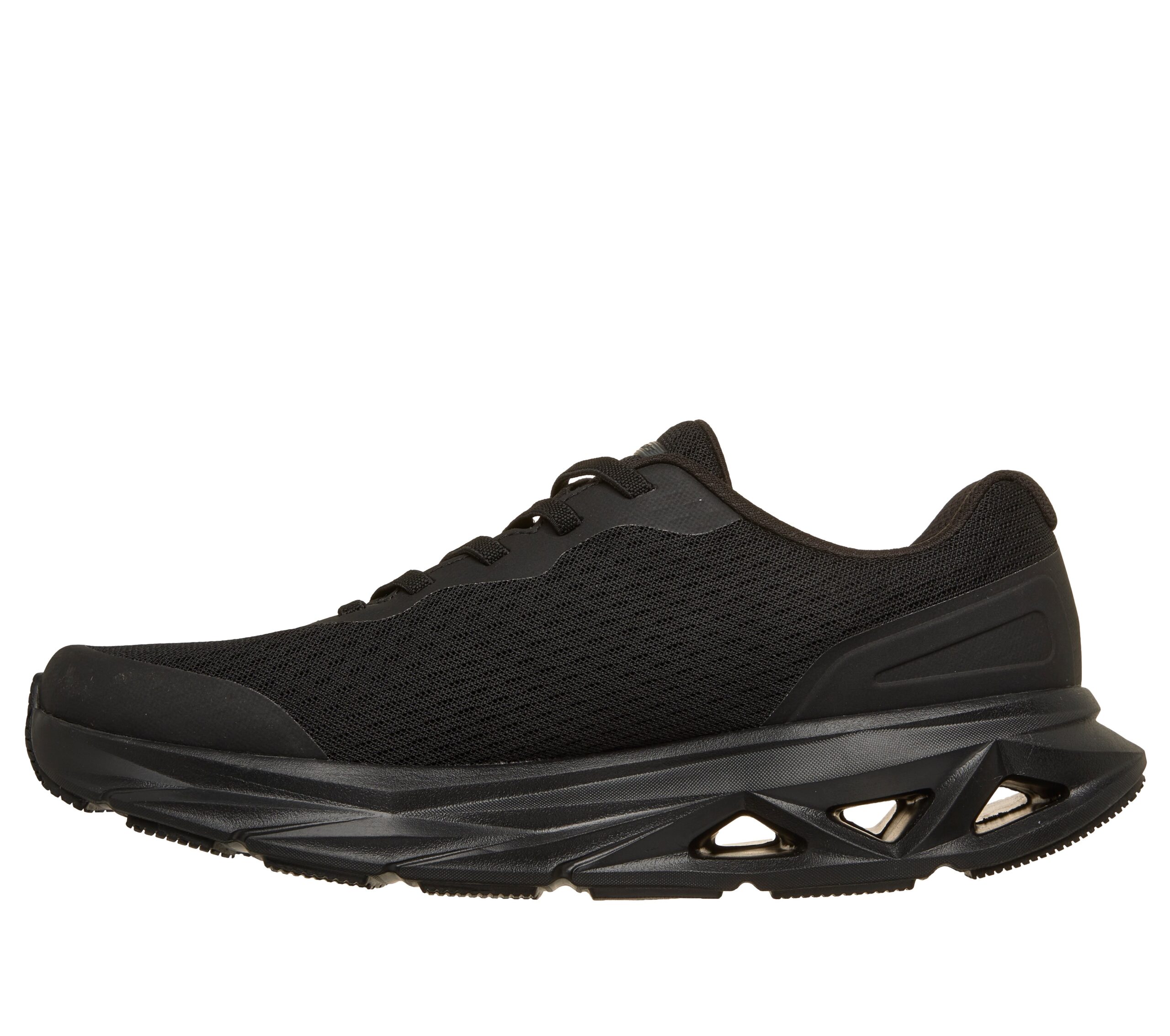 Skechers Glide-Step Vortex – Avalin (221041/BBK) on virtaviivainen ja hyvin vaimennettu kenkä arkeen, kävelyyn ja kevyempään juoksuun. Rullaava Glide-Step®-geometria auttaa luomaan luonnollista etenemismomenttia askellukseen, ja M-Strike®-rakenne tukee sujuvaa siirtymää kantaosumasta varvastyöntöön. Päällinen on urheilullista verkkomateriaalia hotmelt-vahvikkeilla ja kiinteillä joustonauhoilla (No Tie Fit®), joten nauhat eivät löysty tai aukea. Sisällä Air-Cooled Goga Mat™ -pohjallinen lisää hengittävää mukavuutta, ja ULTRA LIGHT -välipohja sekä Soft Stride™ -pehmuste tuovat keveyttä ja pehmeyttä joka askeleelle. Lisäksi malli on konepestävä ja valmistettu 100% vegaanisista materiaaleista.