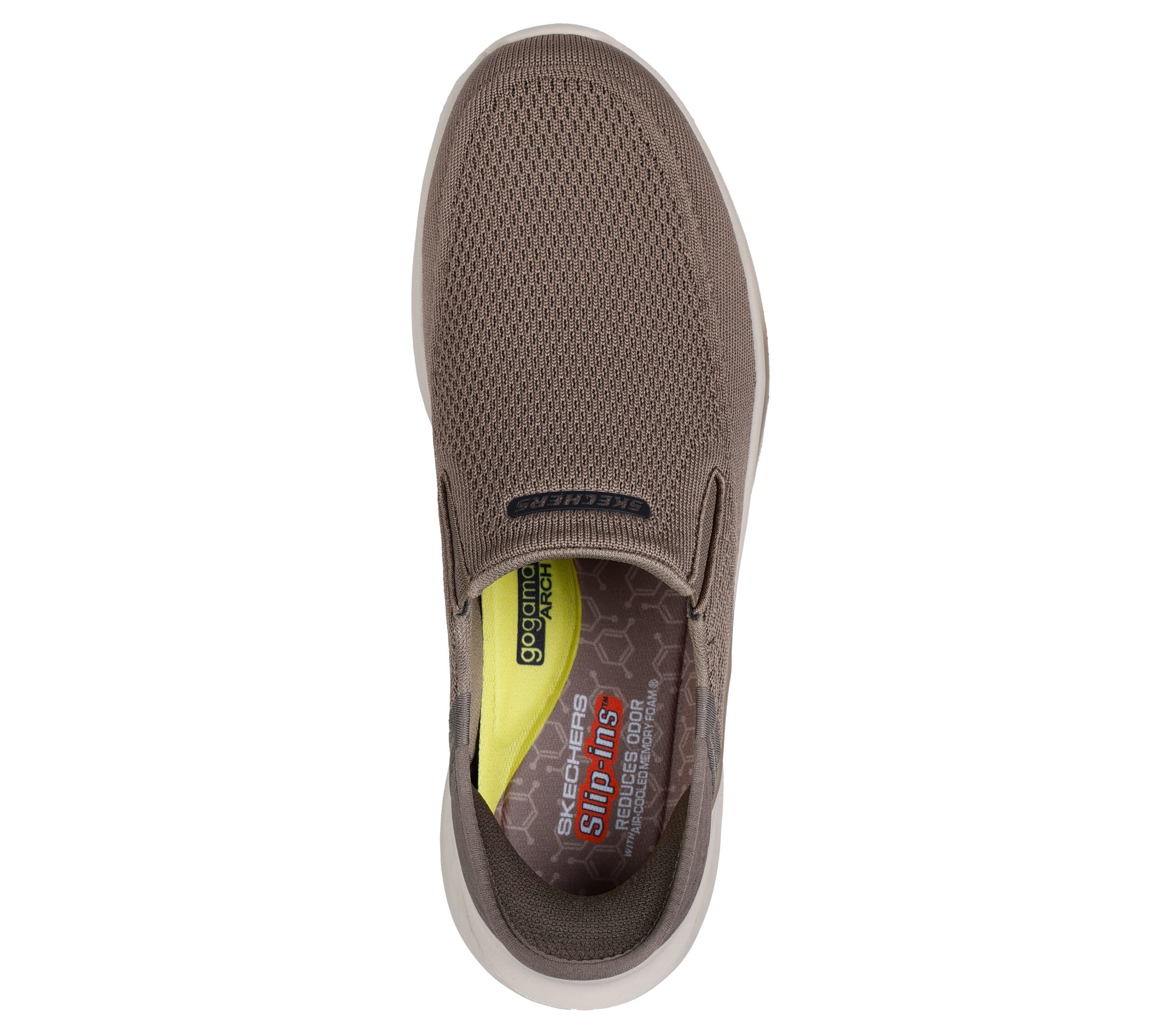 Päällinen on nauhaton neulottu verkkokangas, joka tuntuu kevyeltä ja hengittävältä. Sisällä on hiiltä sisältävä Skechers Air-Cooled Memory Foam® -sisäpohja (Charcoal MF), joka parantaa raikkautta ja lisää pehmeyttä. Lisäksi Skechers Memory Arch™ / Goga Mat Arch™ -pehmuste tuo lisätukea holvikaarelle, mikä tuntuu erityisesti pitkissä kävelyissä ja seisomatyössä.