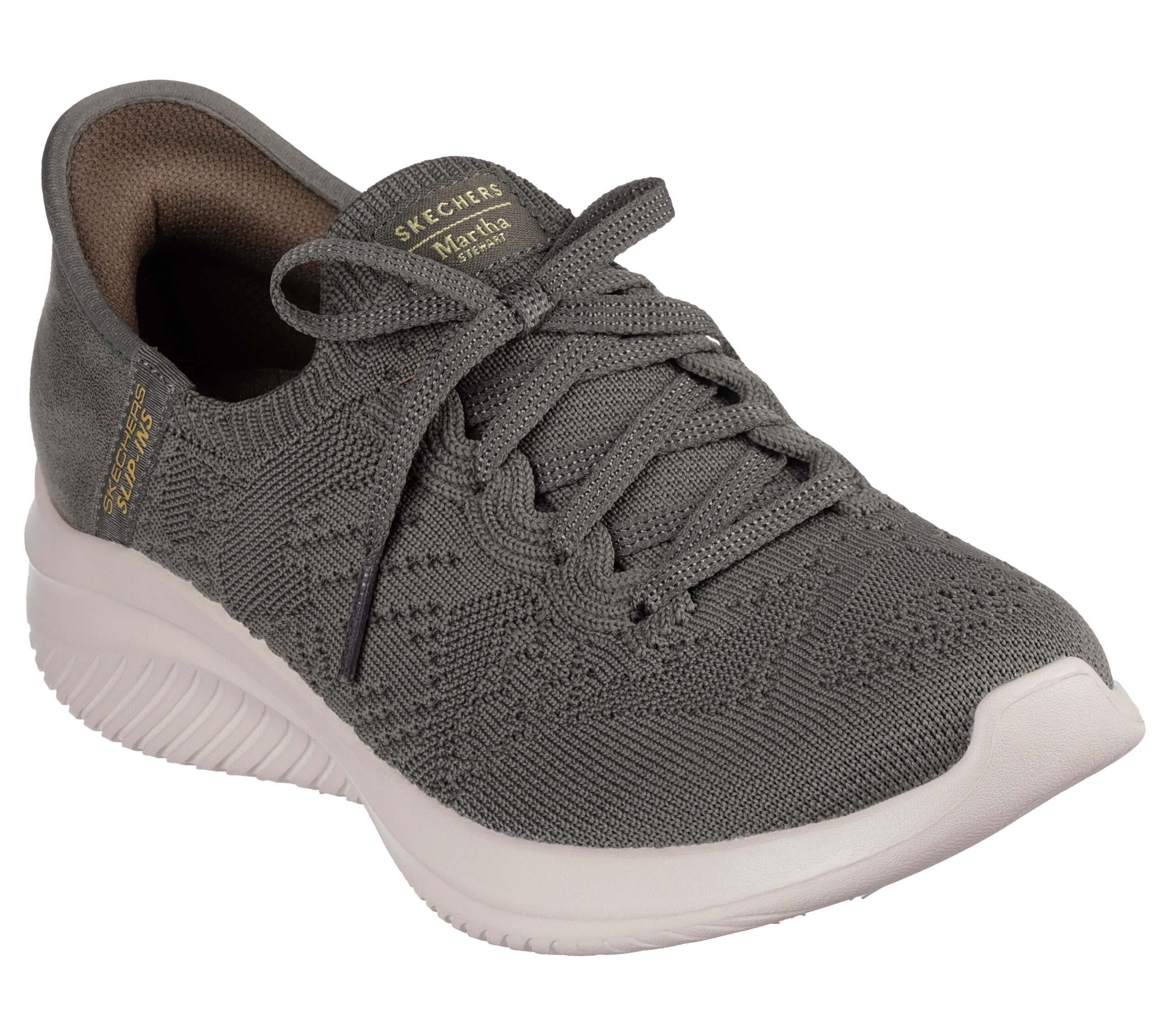 Skechers Martha Stewart: Hands Free Slip-ins® – Ultra Flex 3.0 – Back On Track (158911OLV) on huoleton arjen kenkä, jossa yhdistyvät siisti ulkonäkö ja helppo käytettävyys. Olive-sävy on helppo yhdistää arkipukeutumiseen, ja malliston viimeistely näkyy erityisvalmistetussa neulotussa päällisessä sekä koristeellisissa nauhoissa.