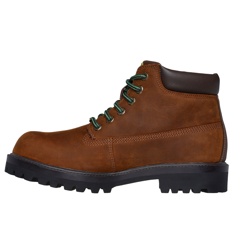 Koe tuki ja koko päivän mukavuus Skechers x John Deere -mallistosta. Tämä Relaxed Fit® -työsaapas yhdistää vedenpitävän nahkapäällisen, säädettävän nauhoituksen ja pehmustetun varren tuomaan luotettavaa suojaa ja istuvuutta. Skechers Air-Cooled Memory Foam® -sisäpohja varmistaa miellyttävän käyttökokemuksen pitkissäkin päivissä. Kaksi ikonista amerikkalaista brändiä – Skechers ja John Deere – yhdistävät voimansa tarjotakseen ainutlaatuisen yhdistelmän kestävyyttä, laatua ja mukavuutta. Tämä malli sopii erinomaisesti työhön, ulkoiluun ja jokapäiväiseen käyttöön.