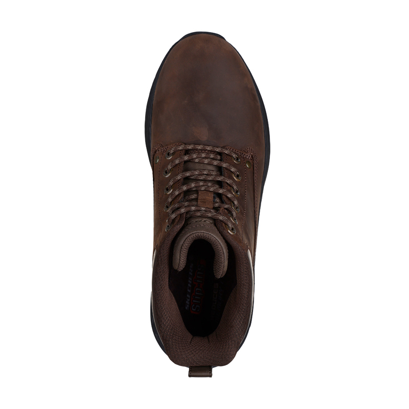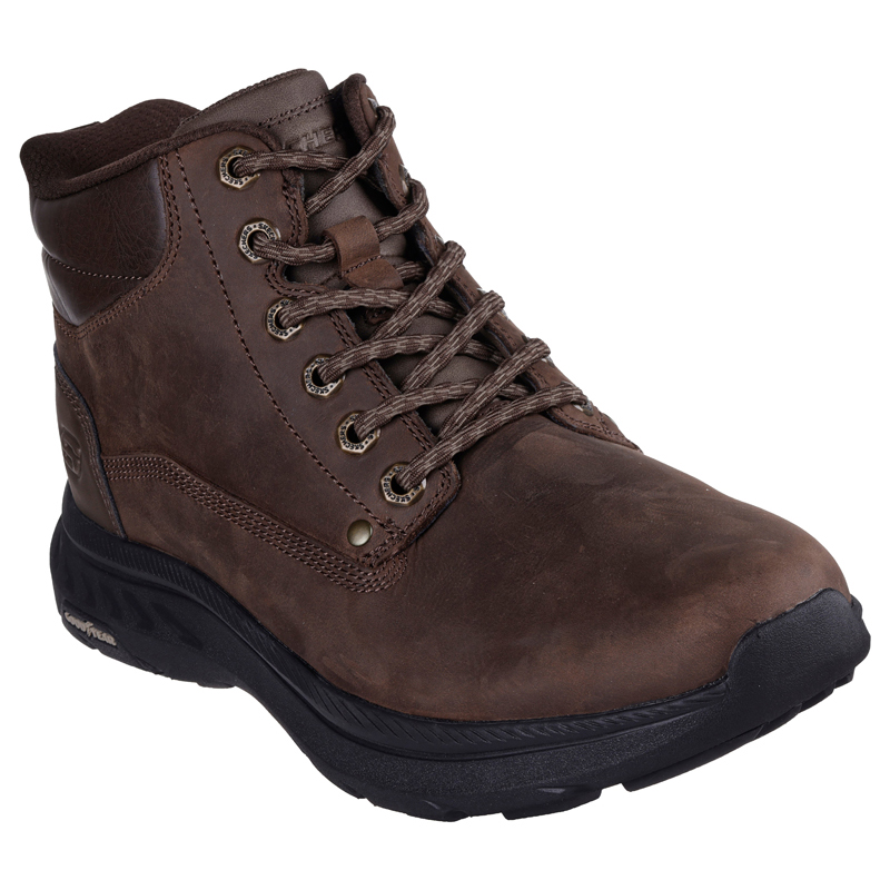 Kohtaa elementit vaivattomalla mukavuudella Skechers Hands Free Slip-ins Relaxed Fit: Pollard – Waylon -kengissä. Eksklusiivisella Heel Pillow -muotoilulla varustetut nauhalliset nilkkurit sisältävät nahka- ja synteettisen päällisen, pehmustetun Skechers Air-Cooled Memory Foam -pohjallisen aktiivihiilellä sekä Goodyear-kumipohjan.