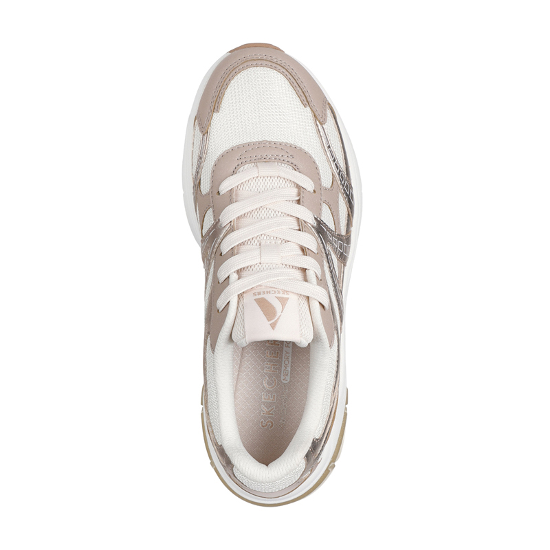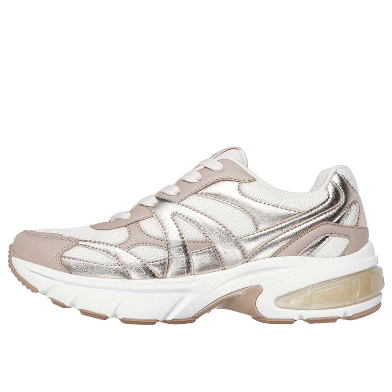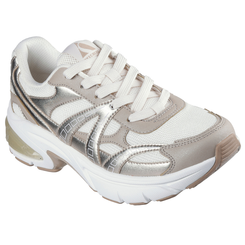 Tutustu Skechers Street Shadow – Stellar 90 -lenkkareihin, jotka hehkuvat urbaania tyylikkyyttä. Nämä nauhalliset tennarit yhdistävät metallinhohtoisen duraleather-päällisen ja verkkokankaan moderniin lookiin, jota täydentää läpinäkyvä välipohjan elementti. Mukavuutta lisää Skechers Air-Cooled Memory Foam-sisäpohjallinen, joka tuo askeleisiisi pehmeyttä jokaisella askeleella.