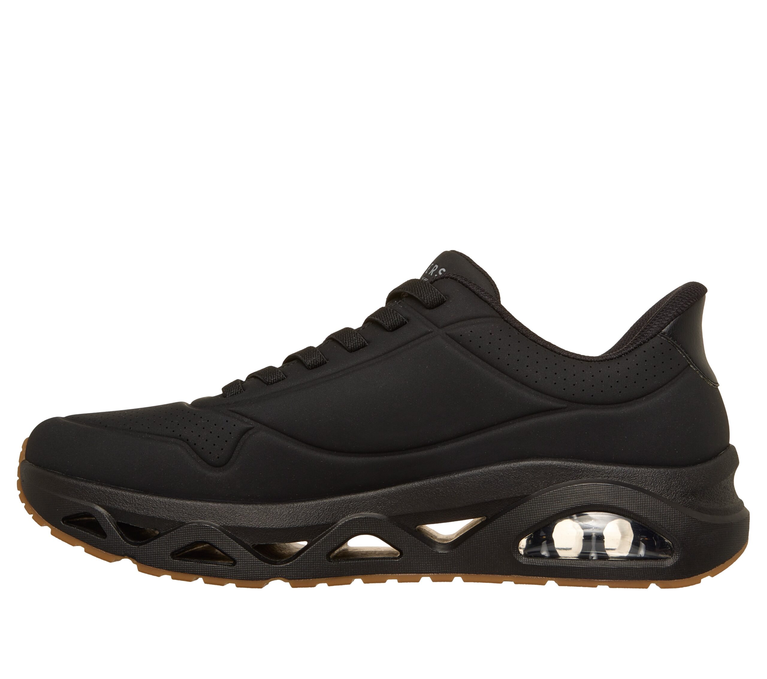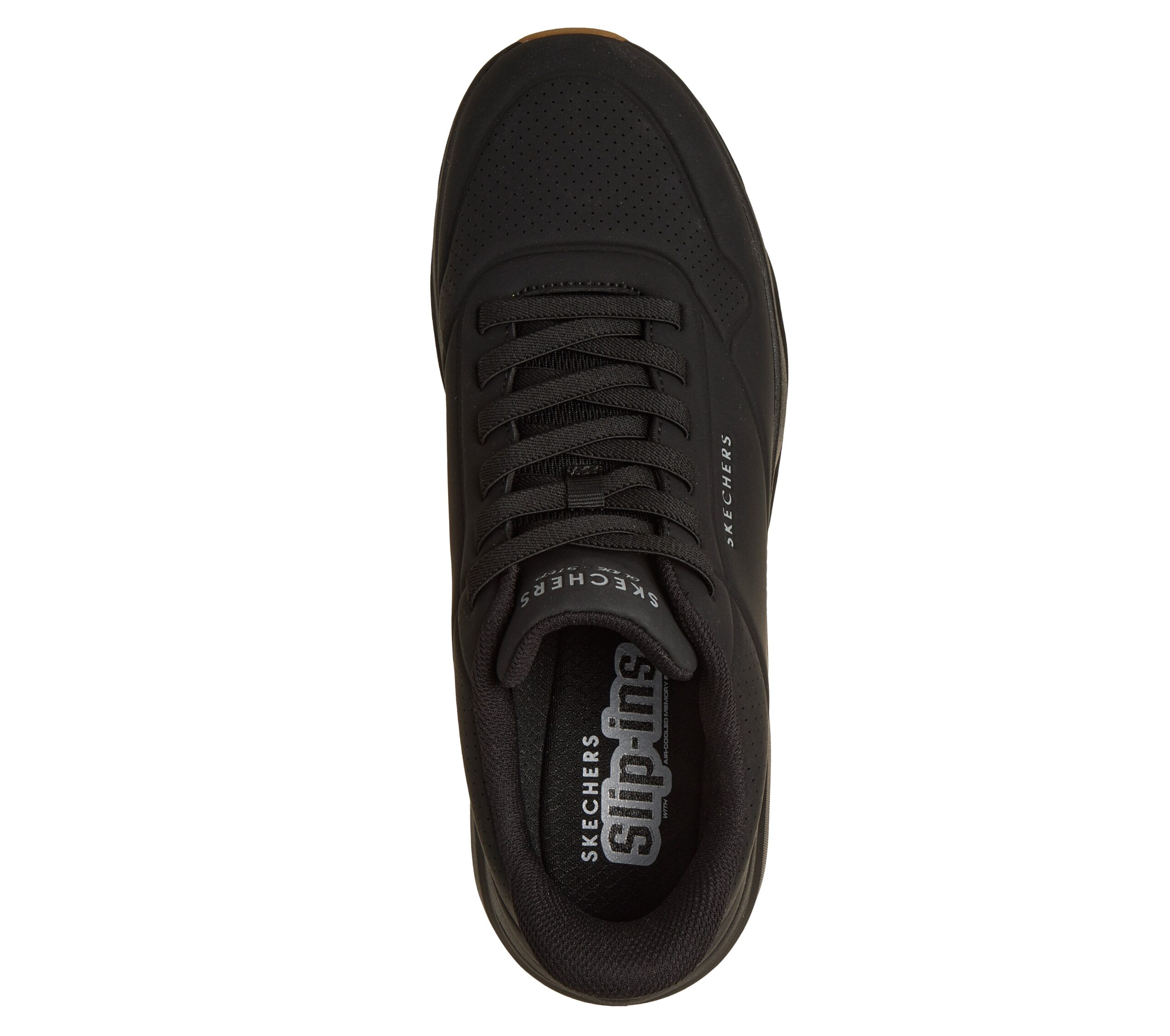 Skechers Slip-ins: UNO Glide-Step® – Glide On Air Black 183420 on helposti jalkaan sujahtava vapaa-ajan kenkä, jossa yhdistyvät sporttinen tyyli, pehmeä käyttömukavuus ja vaivaton pukeutuminen. Sopii arkeen, vapaa-aikaan ja aktiivisiin päiviin, kun haluat kengältä helppoutta ja miellyttävää askeltuntumaa koko päiväksi.